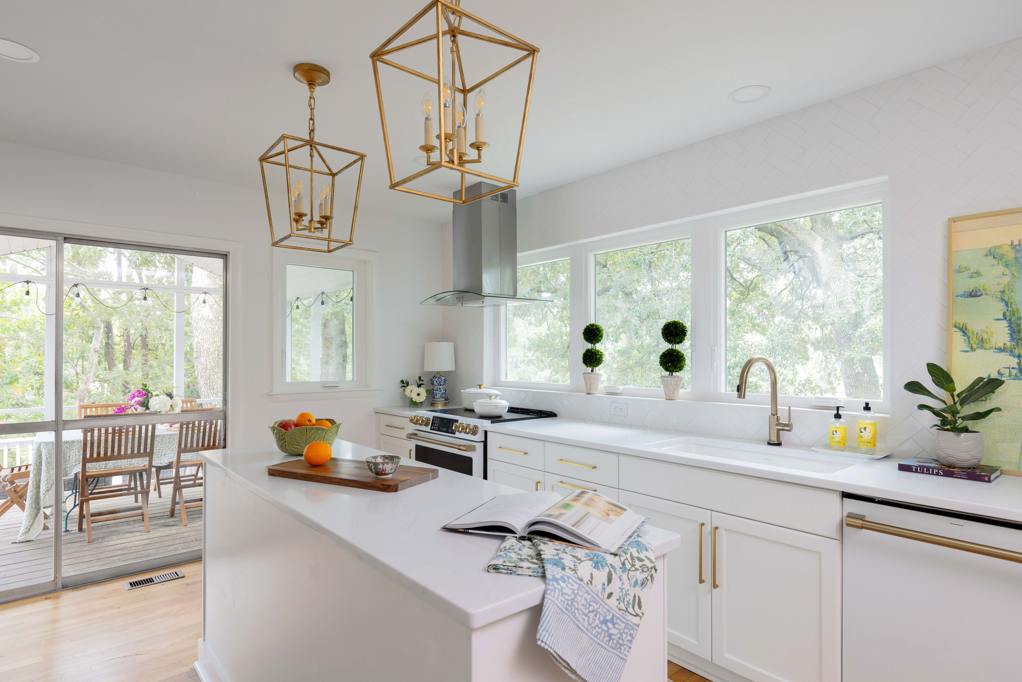 Light, openness, and connection to the outdoors guided the transformation of this waterfront home. Architectural adjustments were made to improve flow and sightlines, with widened openings and new windows carefully placed to frame views of the water and surrounding landscape. A soft white palette creates a fresh foundation throughout, layered with gentle blues and greens, warm wood tones, and subtle brass accents to keep the interiors feeling bright yet grounded.